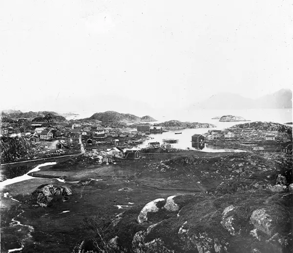 Bildet er tatt fra Sommerskaret og viser Kabelvåg sentrum. (Opplyst av Tone Aalstad)