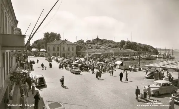 Postkortet fra "Strømstad Torget" fikk litt bilinteressert hjelp fra Fredrikstad: