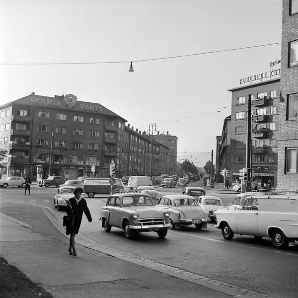 - Bilen nærmest til venstre er en Moskwich årsmodell ca. 1956. Varebilen til høyre er en Opel Olympia 1961-62, foran den en Wartburg.