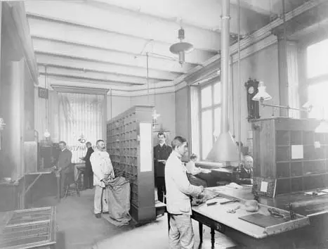 Malmö 1, postkontor 1906. Avgående avdelningen före nya