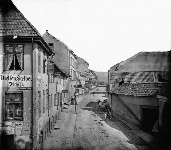 Bildet, som var anført som "1863-1883", lar seg tidfeste ganske nøyaktig. På husveggen til v. (litt utenfor mitt utsnitt av originalen) står en plakat:
