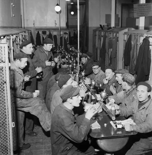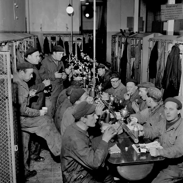 I Rörverkstadens personalrum i Stora Verkstadsbyggnaden var det trångt. Så sent som på 1950-talet lade man masoniteskivor på tvättrännor och använde dem till frukostbord på lördagarna. Stora verkstadsbyggnaden revs 1982.