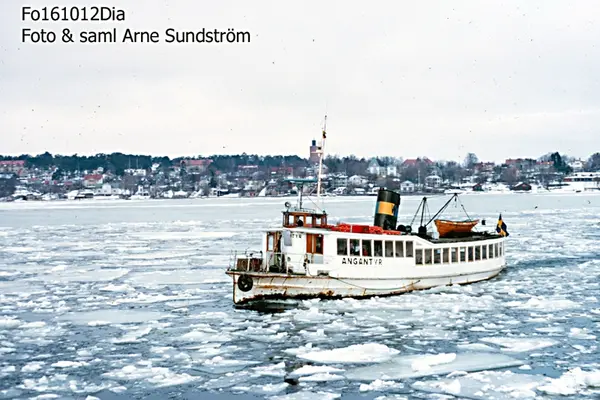 Övrigt: 1909 Levererad av Motala Verkstad som Angantyr till Stockholms Ångslups AB. Trafikerar Stockholm - Essingeöarna och andra öar på Mälarsidan av Stockholm.
