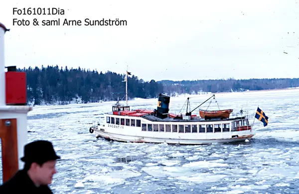 Övrigt: 1909 Levererad av Motala Verkstad som Angantyr till Stockholms Ångslups AB. Trafikerar Stockholm - Essingeöarna och andra öar på Mälarsidan av Stockholm.