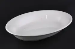 Lite serveringsfat, brukt på restauranten på Kirkestuen. Utskiftet og tatt inn i november 1992.