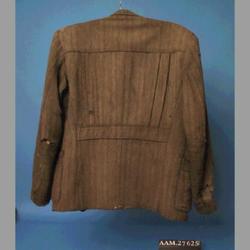 - Dressjakke av cellull. Det var ikke lett å skaffe klær til ungdom i vekst under krigen. Denne dressjakka er sydd av en skredder i Arendal for giveren som da var 17 år gammel. Stoffet er cellull - trådene er spunnet av en blanding av cellulosefiber og ullfiber. Legg merke til snittet i ryggen - her har skredderen utnyttet tøystykker som egentlig ikke var store nok.