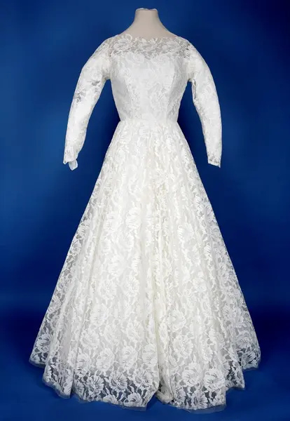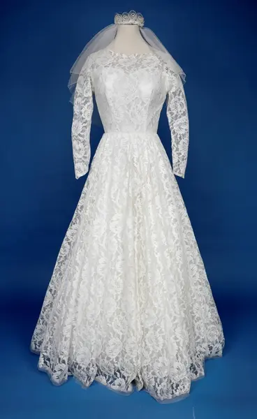 Form: Klassisk for tiden. Brudekjole med slør.