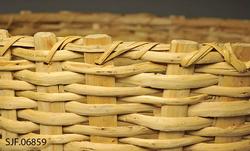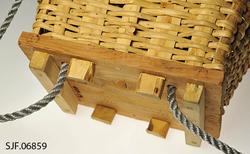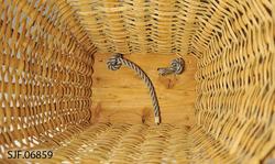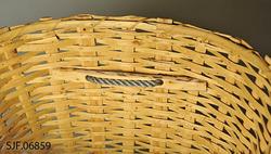 På innsiden øverst er det lagt inn en halvkløyvd einekvist. Denne er bundet fast til staker og flettverk med en skjene av splittet/delt spanskrør (cane). Skjenen går gjennom borede hull i spilene.