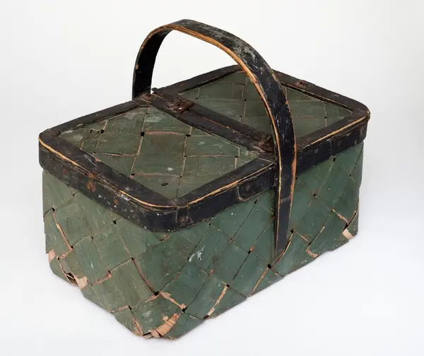 Kurven er i skråflettet spon, og det er sprikret på en kant/avslutning på kurven. Kurven har også en hank som er tilspikket. Den har en umalt i...