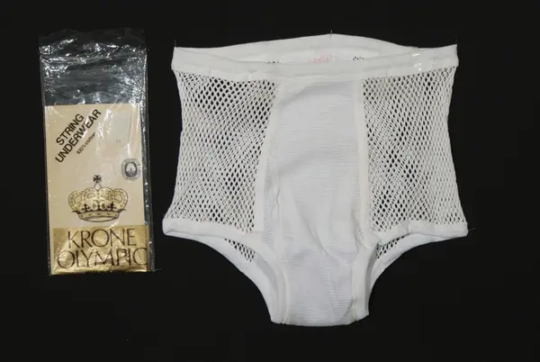 - Produsert ved Salhus Tricotagefabrik utenfor Bergen, truleg for eksport, sidan teksten på emballasjen er på engelsk. Plagg produsert ved tekstilfabrikken Salhus Tricotagefabrik utanfor Bergen.