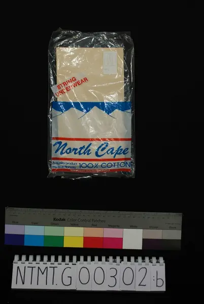 Se påført tekst/inskripsjon, under arkefanen; beskrivelse- ProdusentSalhus Tricotagefabrik (1859 - 1989)sikker