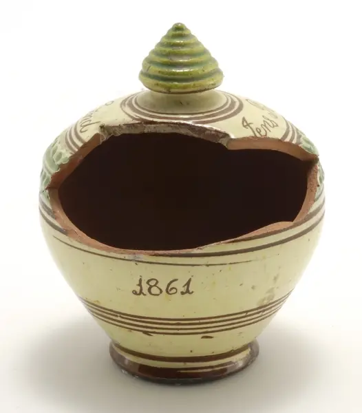 Produksjon - Produsert: 1861 (Innskrift risset gjennom glasur på forsiden)