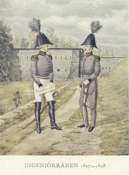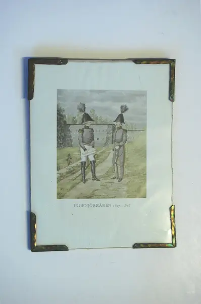 - Ingår i en samling med 11 inglasade planscher som visar uniformer från fortifikations- och ingenjörskåren. Planscherna har tillhört kapten Rune Eltoft, Boden. Inramningen är utförd av förvaltare Carl Rosén. Båda tillhörde fortifikationskåren.