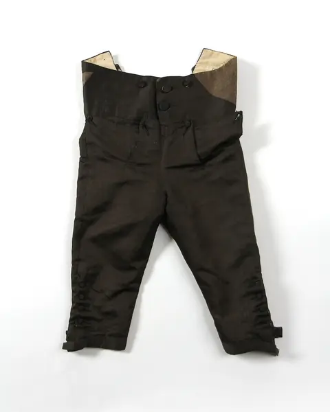 "52 Knäbyxa. Af mörkbrunt siden. Använd ss. 50 [=50-52 använda ss. brudgummsdrägt på 1790-talet]. G. ss. 50 [af fröken Louise Hazelius under hösten 1872]. Bil."