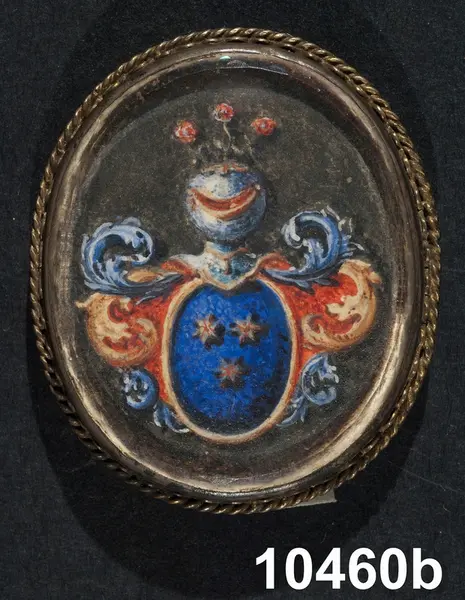 b) Med vapensköld, hvari 3 stjärnor.