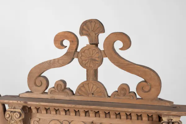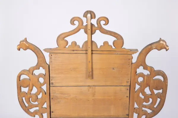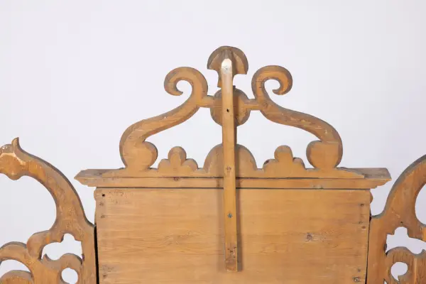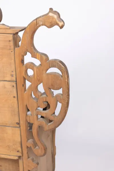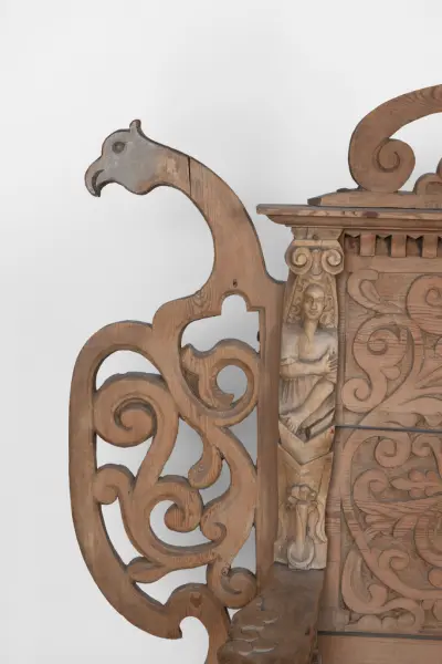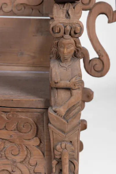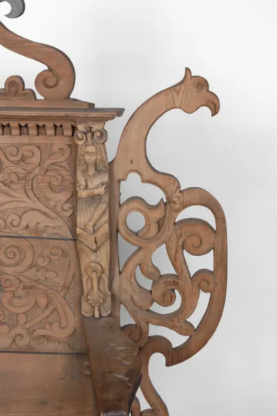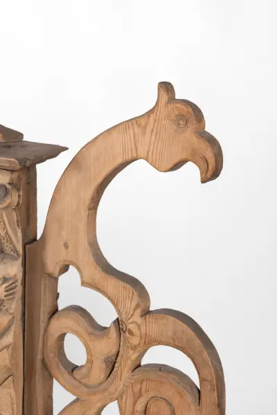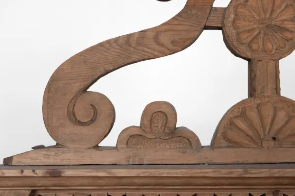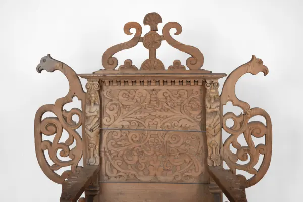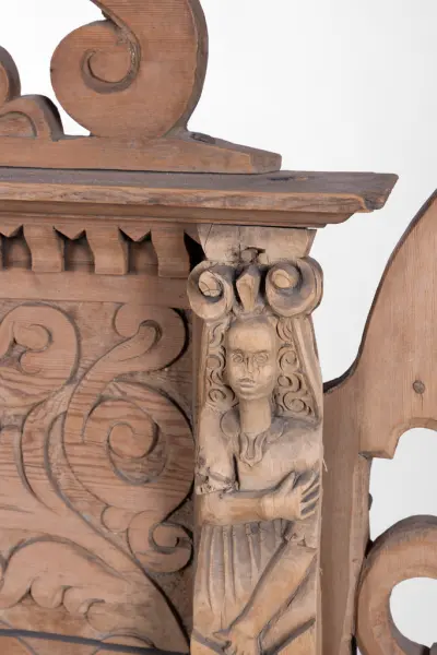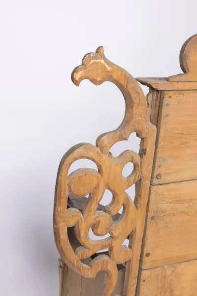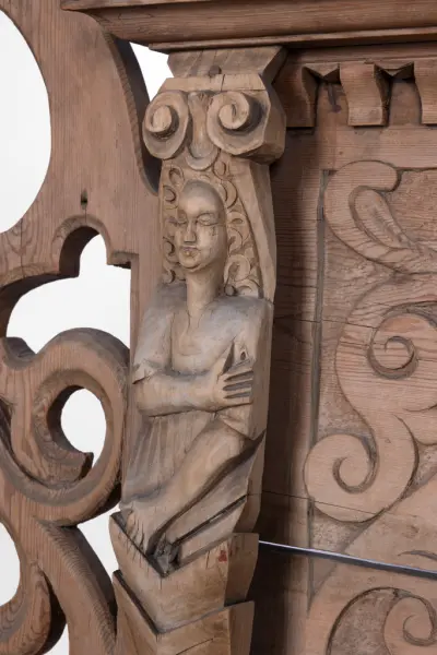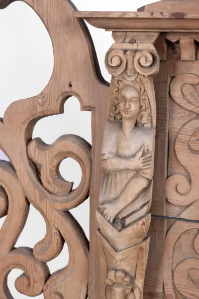 - Stoler hadde ulike bruksområder i kirken, for eksempel ved skriftemål eller som sitteplasser i sakristiet og i private losjer. Denne stolen er utsmykket med flatskurd - flate mønstre av blader og ranker med lavt relieff er et kjennetegn ved den norske renessansestilen.
