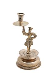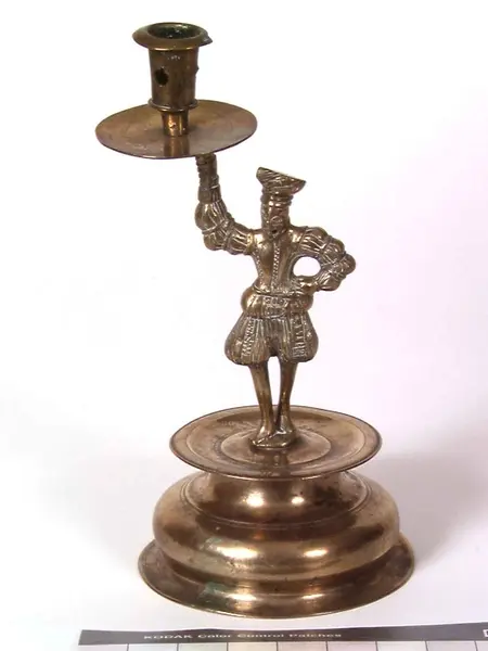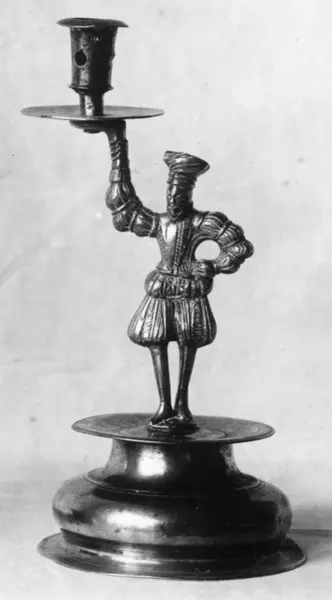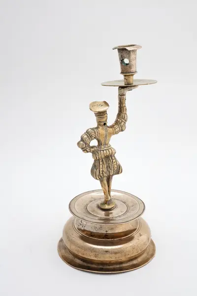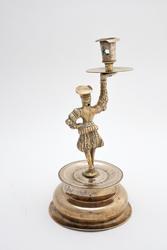 Flamsk? Messing. På figurens hode gravert: B?SS. På platen gravert: A E S D. Stempel på fotplaten: S S med en saks imellom. Foten støpt og dreiet, figuren støpt og siselert. Foten ...