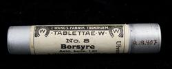 - Antagelig ligget på lager i Apoteket Elgen i Steinkjer. Apoteker Halldis Lund var innehaver av apoteket i tidsrommet 1980-1995.