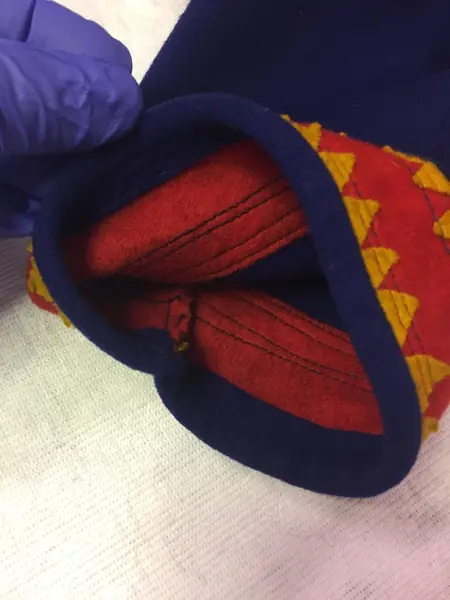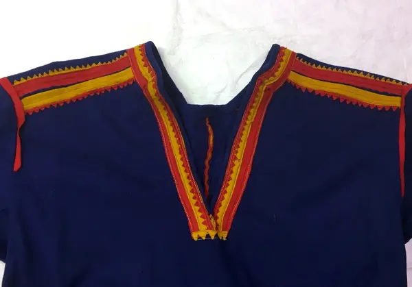 - Innkommet 1991 som gave fra Rolf Holmboe. Trolig er dette kofte og barmklede til en pitesamisk drakt. Det pitesamiske området i Norge var i Salten/NordreHelgeland. Dette kunne stemme med opplysninger om at giver har drevet handel i Nordland. Se. oppl.