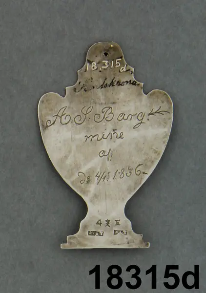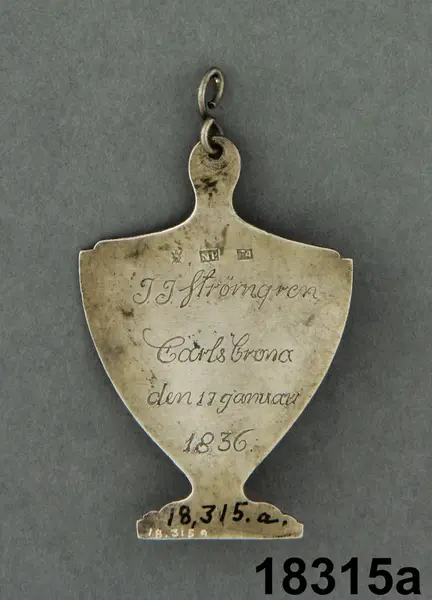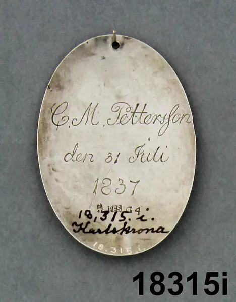 G[åva] af fabriks- och Handtverksföreningen i Karlskrona gm lektor J. A. Gadd 21/6 1877"