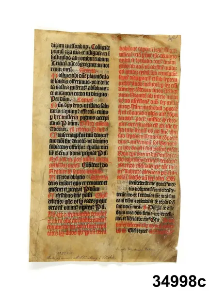 " Missalen och breviarium. Lösa blad. a) Breviarium Upsalense 1496. b) Missale Upsalense 1513. Ett blad papper (tryckt). c) Missale Upsalense vetus [?] Ett blad pergament. Ink. af aman. A. Strindberg i Stockholm jämte 34.995-35.000 samt en samling böcker - 400 kr. 3/4 1883. Bil 230."
