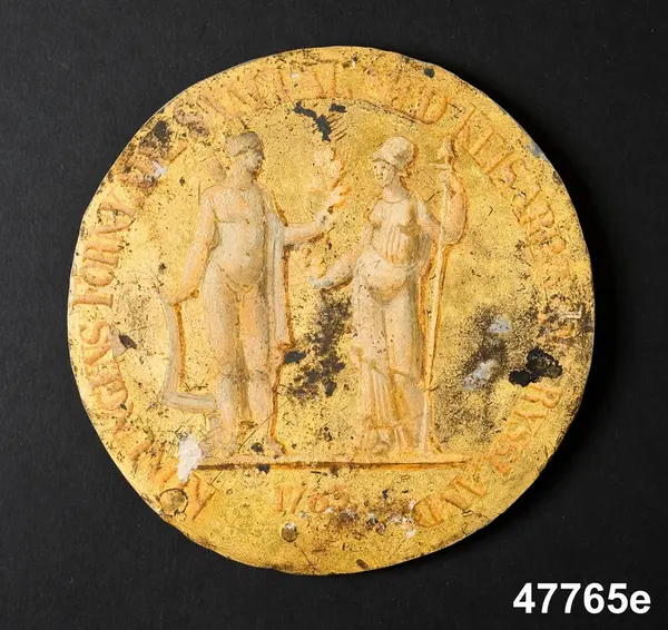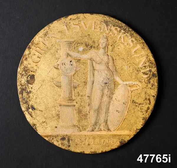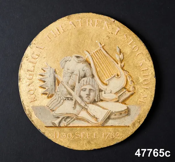 Den 24 januari 1808 hålls en hejdundrande fest på Stockholms börshus med anledning av avtäckningen av Tobias Sergels staty av Gustav III på Skeppsbrokajen nedanför slottet. Det är sexton år sedan kungen blev mördad, det är ett år kvar innan hans son, den nuvarande kungen Gustav IV Adolf, avsätts och tvingas lämna landet. Efter den högtidliga avtäckningen bjuder Stockholms borgerskap på middag. Förutom de kungliga, är runt niohundra personer inbjudna. Kungens bord är dukat med en platå, upplyst av ”stakar, kronor och guirandoller” med en modell av den nyss avtäckta statyn under ett levande lagerträd. Runtomkring ”lågo afteckningar på bleckskivor till ett qvarters diameter vardera, målade på guldbotten med hwita figurer, af de Medailler, hvilka tid efter annan bliwit slagne öfwer Högtsalig Konungens minnesvärda bedrifter eller under Hans Regering timade märkvärdiga händelser.” Där har vi våra brickor, tavlor och medaljonger! De var bordsprydnader på majestätets bord.