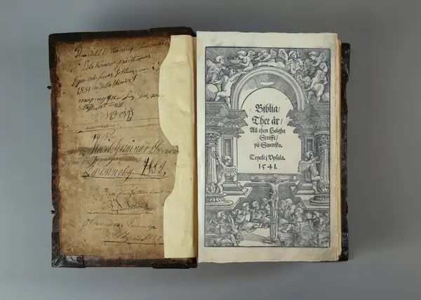 Jag söker en Bibel från 1541 som ska finnas hos er och som har ägts av bl a Hans Åkesson (1552-1619). I denna ska finnas uppgifter om bl Knut Soops anteckningar om sitt bröllop 1635 samt om sina barn 1639-1645.