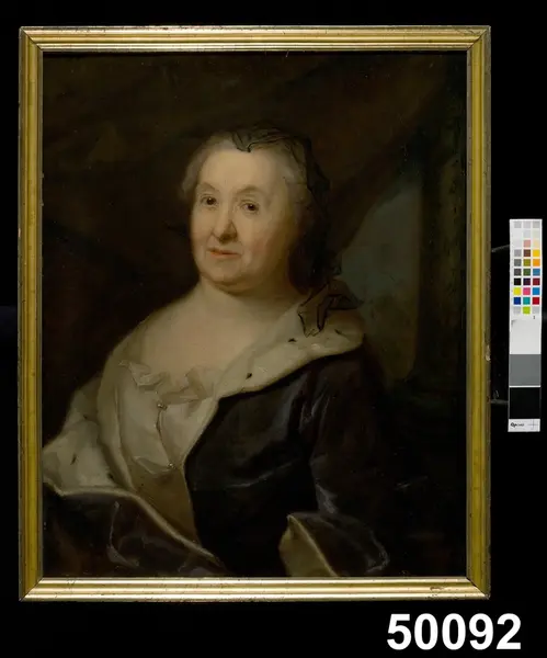 Föreställer Brita Behm (1670-1755), kallad "Järn-Brita", ägare till Axmars bruk i Gästrikland.