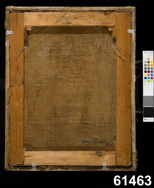 "Schultzen, Jacobina. Knästycke: olja på duk. Ram förg. 1700t. Ulr. Fr Pasch. Å spännramens baks. med bläck: 'Säkerligen Jacobina Schulzen f. 1763 g. 1792 med sekre. J. P . Falk d 1813, syster till öfverste J. C von Schultzen, taflans forne egare. Renov af Cedergren 1878'.