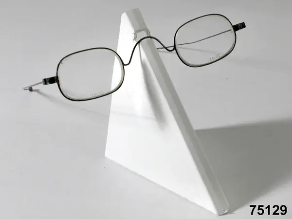 "Glasögon. Tillhört C. J. L. Almqvist. G. ss. 75.128 [G. af fröken Adelheid Hazelius i Stockholm 17/4 1893]. Gifvarinnan fått dem i testamente ss. föregående [75.128]."