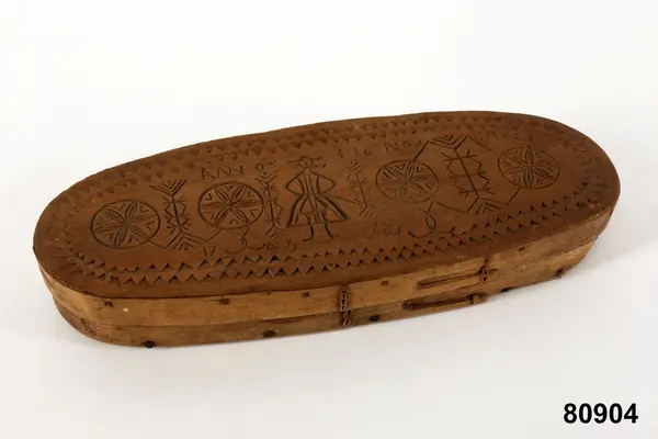 "Ljusask, oval. Lövträ, barrträ. Svept, skuren. Botten och locka av barrträ med svep av lövtr, med falsar. Bottensvepet fästat med järnnubbar, locket svep fästat med dymlingar av trä. Hopfästningen av svepen med rottågor, kedjesöm, två rader. Skuren ornamentik på locket, karvsnitt och uddsnitt, föreställande människa. På locket inskuret 'ANNO D 16 NOVEMBER 1743 JOS'. Begagnad vid upphämtandet av julljusen för kyrkans behov inom den rote som Näs by tillhört. I. 29/10 1895 av A. Näsström, Näs, Sidensjö sn för 1,75."