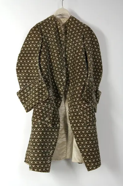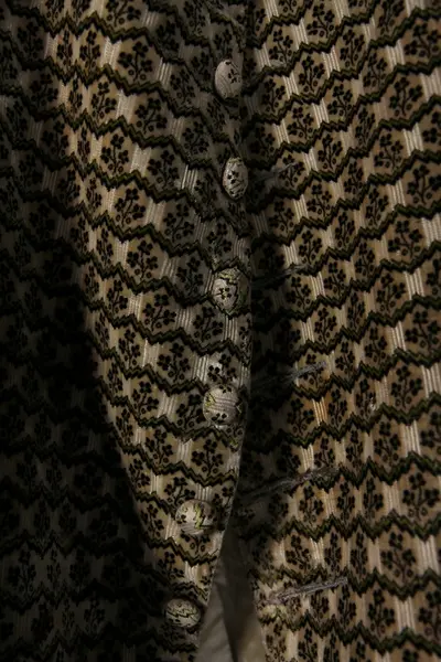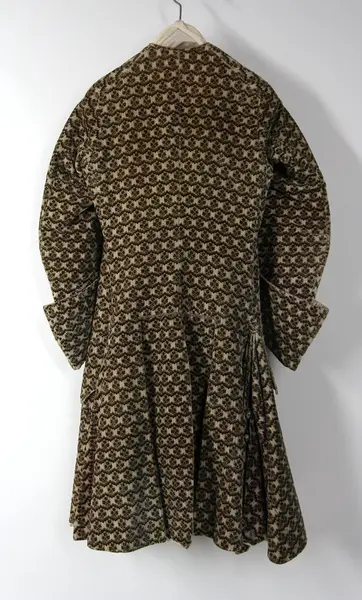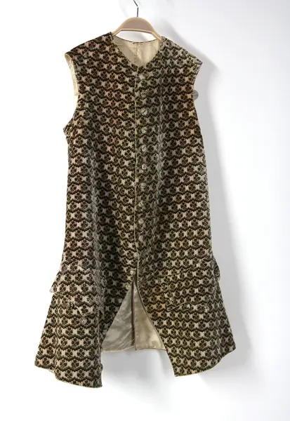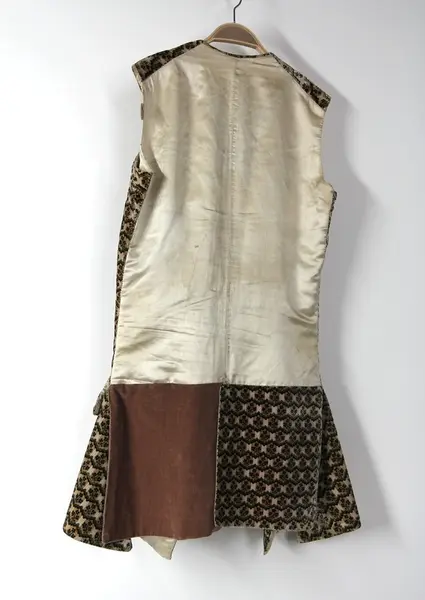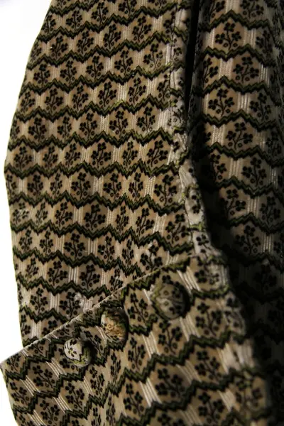 väst av fasonerad sammet: svart och grönt mot violett botten.