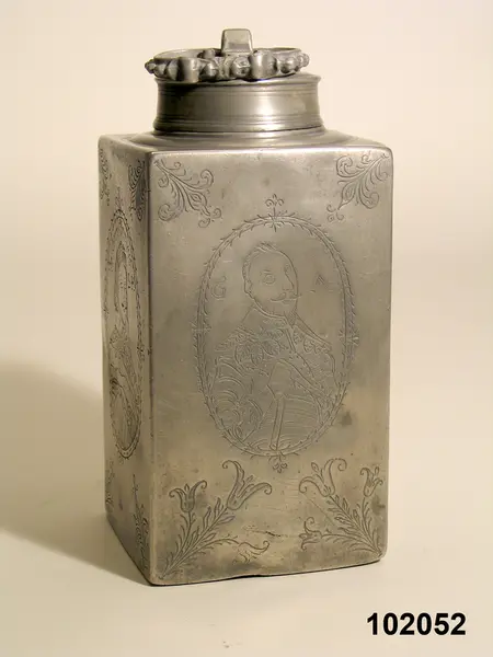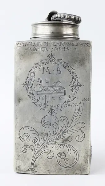 Fil. dr. Alexander Engström, författare till avhandlingen Olikhetens praktiker, Adlig begravningskultur i Sverige c:a 1630–1680, där han bland annat beskriver fältherren Gustaf Horns begravning, menar att den tredje, på katalogkortet oidentifierade mannen graverad på flaskan, skulle kunna vara Gustaf Horn.