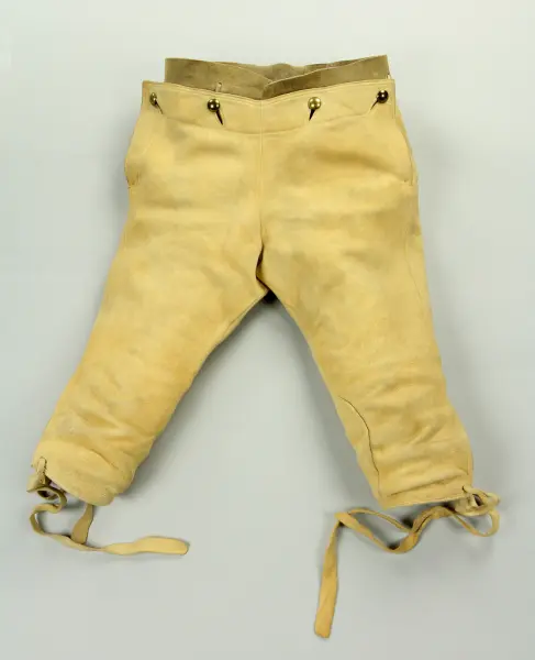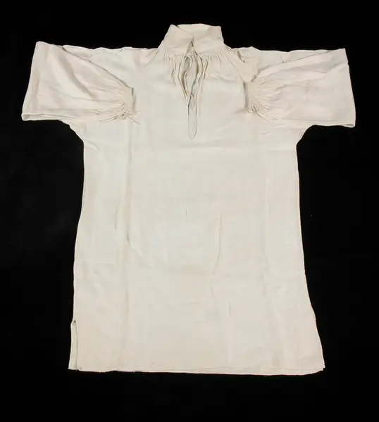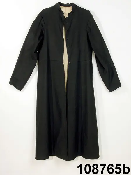"a. Skjorta, lärftsväf. b. Rock af svart kläde. c. Väst ('lifstycke') af svart kläde d. Byxor ('boxör') af sämskskinn m. mässingsknappar e. Förskinn ('stjimpa') af brunt läder för man f. Ett par strumpor ('långsockor') stickad af hvitt ullgarn. g. Ett par handskar af sämskskinn för man. h. Ett par skor ('näfverskor' 'asklock' för man 1778-94. i. Manshatt, svart, gustaviansk form. j. Manshatt, svart gustaviansk form. k. Långhalsduk ('hasselutj') af läsväf. l. Löskrage m. fläck- och snedkrus."