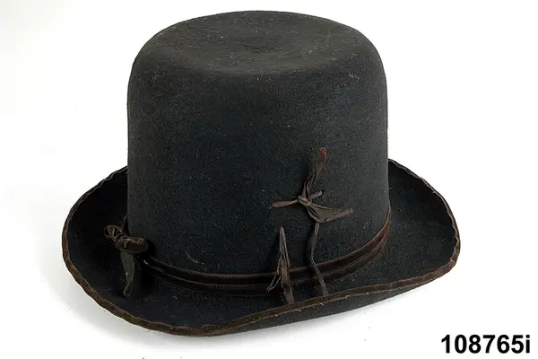 "108765 a-l Mansdräkt, Dalarna Leksands sn, bestående av a skjorta, b rock, c väst, d byxor, e förskinn, f strumpor, g handskar, h skor, i, j 2 hattar, k långhalsduk och l löskrage. Ink. 1907 25/2 Persson Kann Lars, Djura, Leksand, gm Pettersson Anna, Stockholm. Bil."