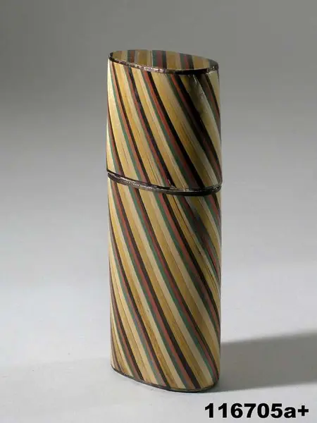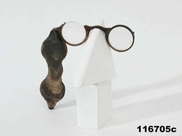 "Glasögonfodral i halmmosaik med inneliggande 1 par glasögon och 1 lornjett."