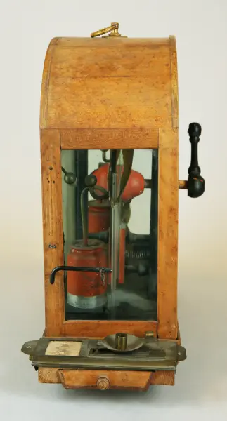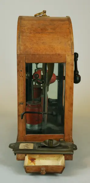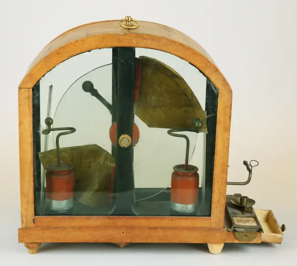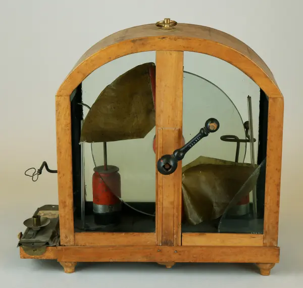 "Elektricitetsmaskin. Gåva 25/9 1921 K. Husgerådskammaren g. Böttiger, J., överintendent, Stockholm."