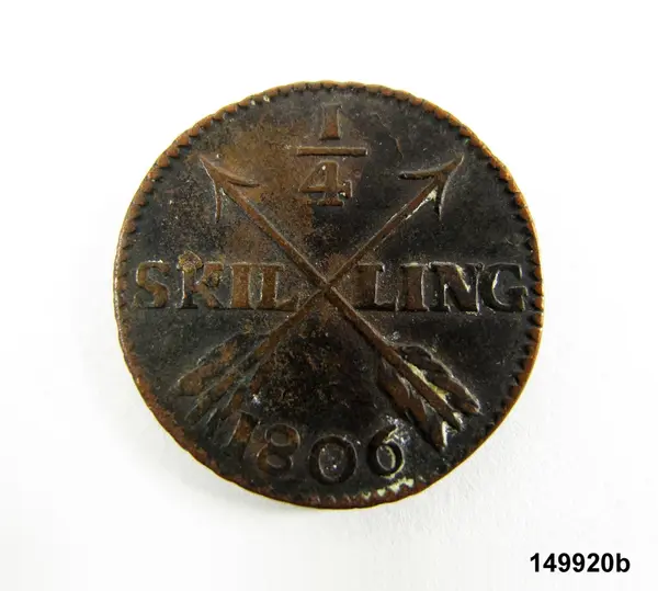 b) 1/4 skilling, koppar, 1806.