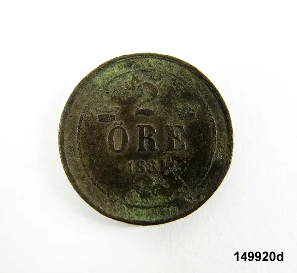 d) 2 öre, brons, 1881.