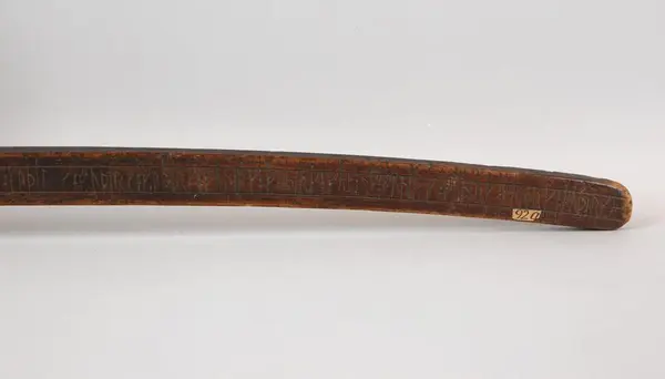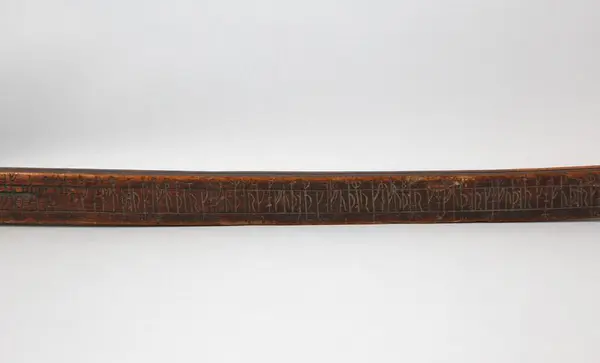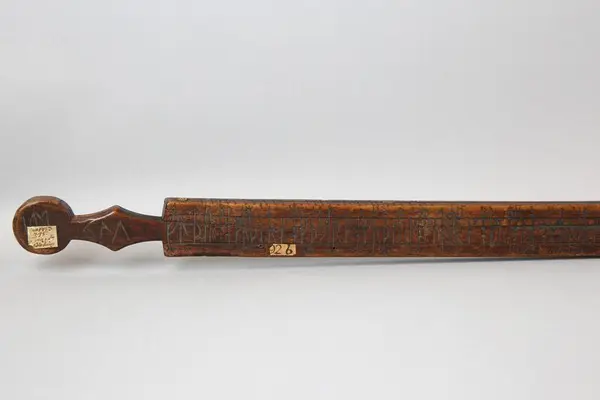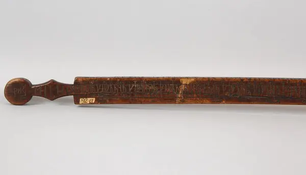 "Runkalender af trä, svärdform. dat. 1672? fr. Farings [?] sn, Medelstads hd, Blekinge.