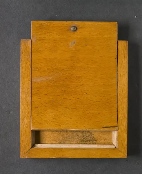 Daguerreotypier, a) herre, knästycke, b) dam; plåtar utan montering inlagda i c) fodral av polerat trä med 2 skjutlock, d) herre, knästycke; ink. från hovfotografen Oscar Halldin, Stockholm. Gåva 30/12 1935 av Nordiska museets vänner."