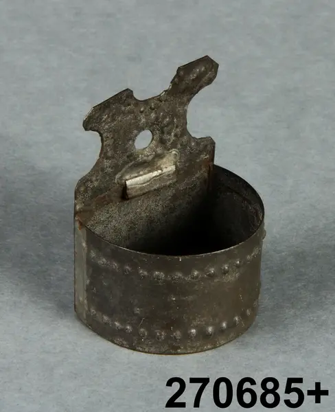 1 större tennfat, 21 mindre tennfat (olika storlekar), 4 tennkannor med hänkel, 2 koppar av tenn, 1 rund karott med lock av tenn, 1 oval karott med lock av tenn, 1 skrin av tenn med kulfötter och skjutlock, 1 saltbinge av bleckplåt, 1 kastrull av bleckplåt, 1 vattentunna av bleckplåt (saknades vid inventering 1997) 1 stor skänkkanna av bleckplåt, 1 slev av järn, 3 durkslag av bleckplåt, 2 kannor med öra av svartmålad bleckplåt, 1 måttkärl av brunmålad bleckplåt, 1 glödfat på ben med svarvat trähandtag, 4 stekpannor av mässsing med handtag av järn (3 handtag avbrutna), 2 mässingslock, 2 krukor av mässing (sakndes vid invetering 1997), 1 ljussax av mässing, 2 skålar av svarvat trä, 3 fåglar av skuret trä, 1 bock av skuret trä, 5 fåglar med riktiga hönsfjädrar.