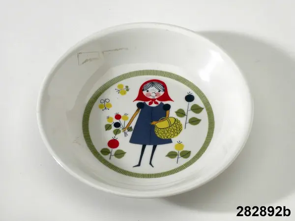 "Rödluvan, 1961. Ifö-verken, som ägde Rörstrands porslinsfabrik, köpte Konstharts och blev först i Sverige att licenstillverka ornamin, dekorerat melamingods. Schweizaren Gustav Hessel uppfann tekniken 1953. Rörstrand skyltade inte med sitt namn, utan verksamheten drevs av nystartade Baloplast i Norrköping."