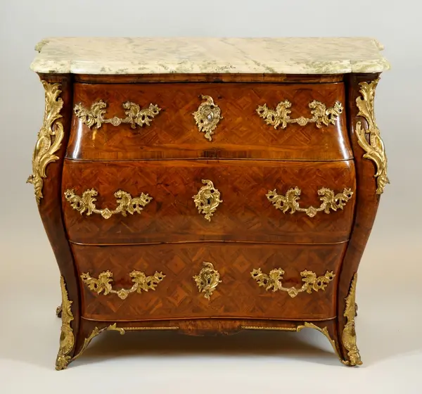 Tillverkad av Olof Martin, mästare i Stockholms snickarämbete 1736-64. Har tillhört givarens föräldrar. Enligt familjetraditionen har byrån ursprungligen tillhört prinsessan Sophia Albertina.