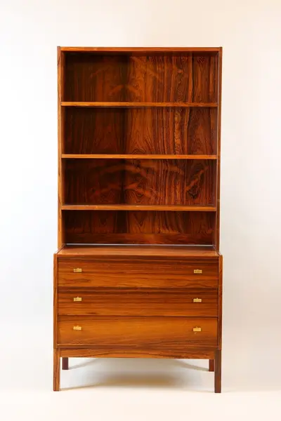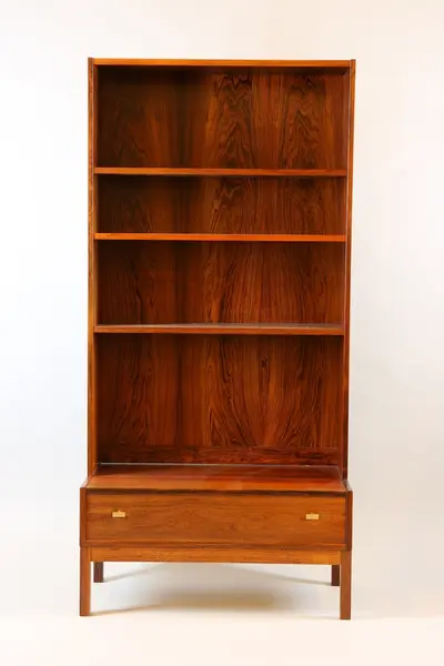 Bokhylla, "Excellent", med TV-bänk samt bar- och vitrinskåp, jakarandafaner på spånskiva, IKEA, 1968.