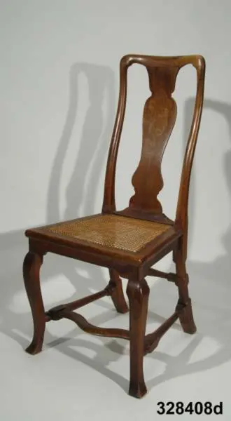 Nordiska museet erbjöds 1992 att som testamentarisk gåva efter då framlidna Louise de Kiriline, Ontario, Kanada, ta emot en grupp sittmöbler bestående av två karmstolar och sex stolar. I samtal mellan arvinge till testator och dåvarande avdelningschefen Ingrid Bergman framgick att bakgrunden till gåvan var att del/delar av möblemanget redan skulle finnas i museets samlingar. En från Kanada översänd polaroidbild visade att en eller möjligtvis två stolar av denna typ, troligen tilllverkade i England omkr. 1720, förvärvats av museet redan 1905. Eftersom möbelgruppen skulle ge ett välkommet tillskott av engelska möbler till Charles Totties malmgård på Skansen tackade Nordiska museet ja till den erbjudna gåvan. Stolarna, som vid ankomsten till Sverige visade sig ha sekundära sitsar, har genom konservatorn Sören Lilja vid Skara museum åter försetts med rottingflätade sitsar av ursprunglig typ. Enligt testators anteckningar hade möblerna en gång tillhört den berömda romanförfattarinnan Sophie von Knorring (1797-1848). På sitt fäderne tillhörde hon ätten Zelow, som under 1700-talet haft stark förankring i Västergötland och även på hennes mans sida var det västgötska inslaget påfallande. De båda stolarna som redan tidigare tillhörde Nordiska museet, inv nr 104.415-104.416, inköptes 1905 från Göteborgs Historiska Museum dit de kommit från den kände samlaren Magister Nilsson i Skara. Dessa stolar är av samma typ, men olikheter i detaljer visar dock att de sannolikt ej ingått i samma möblemang. "Magister Nilsson", adjunkt vid Skara läroverk, som var en eldsjäl i Hazelius anda samlade kulturföremål från sin västgötska hembygd och de stora överensstämmelserna mellan dessa stolar och de stolar som nu förvärvas, visar att typen förekommit i Sverige under 1700-talet och kanske särskilt i de västra landskapen kring västerhavsporten Göteborg. Förvärvet behöver därför inte ses enbart relaterat till Tottieska malmgårdens möblering./Per Falck och Birgitta Martinius 2002.