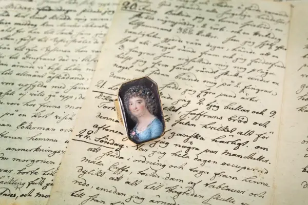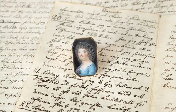 6 Onsdag ….Jag var i flera nipperbodar …samt hos Jouveleraren Carlström, som å nyo infattat mitt af Capitaine Rönngren renouverade Ring Portrait och därtill måst omgöra infattningslådan, hvilken omgörning och infattning kostade 5 RD. (Sannolikt är det denna