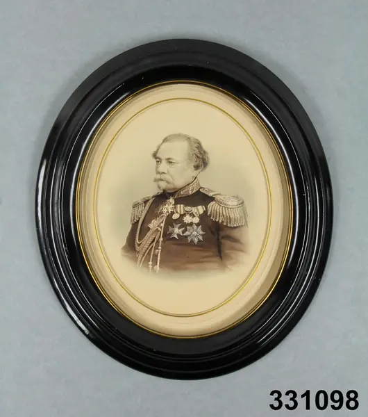 I C. H. Åkersteins hem hängde porträtten på J. A. Hazelius och hans hustru (se nästa inv.nr) på ömse sidor om husfaderns eget fotografi i samma slags ram som dessa ännu 1920.