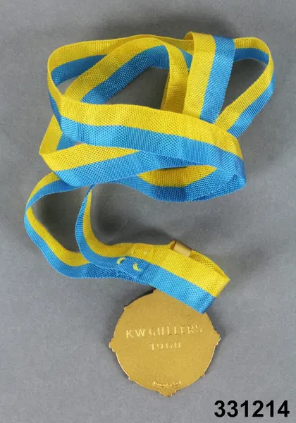 Medalj tilldelad fotografen K W Gullers 1960 av Svenska fotografernas förbund. Gullers var förbundets ordförande från 1953 och fyra år framåt.
