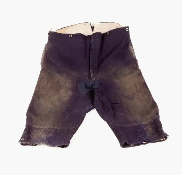Har tillhört Sven "Sleven" Säfwenberg, Uppsala-Kamraternas legendariske målvakt som debuterade som 15-åring i IFK:s mål och gjorde stor succé. Han bar då den tröja och skolmössa, som sedan följde honom på hans kvartssekellånga bandybana fram till 1935. "Sleven" spelade internationellt 15 gånger och var sjufaldig svensk mästare (åren 1915 - 1920 samt 1933). Sistnämnda år fick han mottaga Svenska Dagbladets bragdmedalj. Byxan ingår i utrustning som han som målvakt använde fram till 1935.